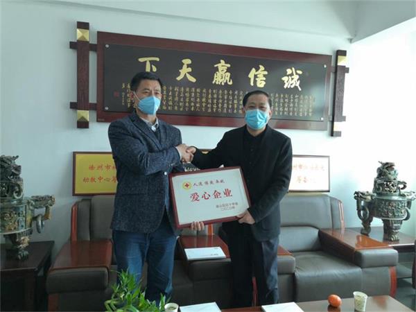 最后泉山区红十字会给hth官方网页入口颁发了爱心企业牌匾,并合影留念。