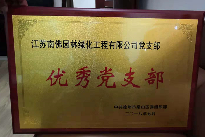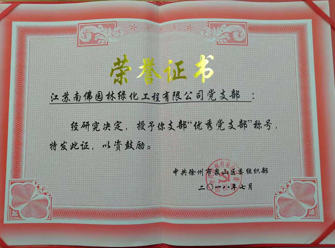 江苏hth官方网页入口绿化工程有限公司在2018年度党建工作中成绩优异,业绩突出,荣获“优秀党支部”荣誉称号。