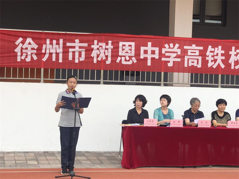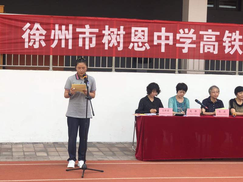 七5班李语凡同学发言:我们将用求知、拼搏的快乐来丰富我们生活的色彩,我们将用飞扬的青春、跳动的热情来续写树恩初中的光辉历史