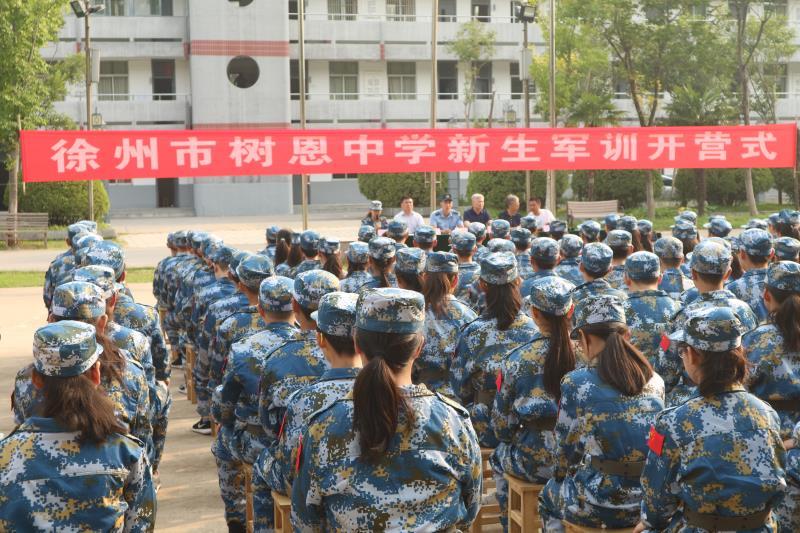 2019年8月21日上午,我校复兴北路校区举行徐州市树恩中学2019级新生军训开营仪式。学校德育处主任杜培松老师主持了开营式。王玉府副校长作军训动员讲话。来自空军勤务学院的教官们受到了同学们的热烈的欢迎。